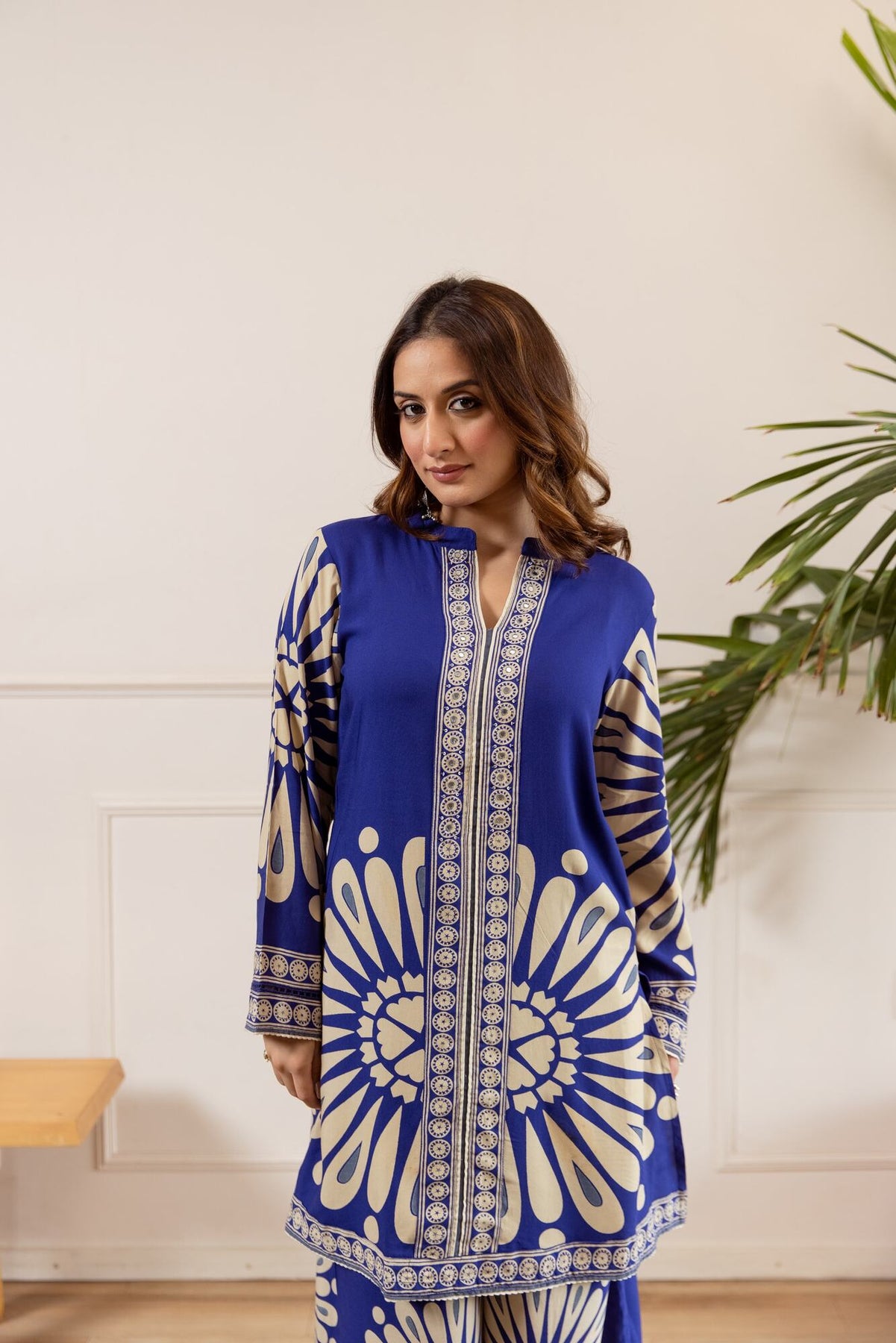 Nehamta Women’s Blue German Rayon Kurta & Palazzo Set. Crafted from premium German rayon fabric, this ensemble offers a soft, breathable feel and a smooth, elegant drape for all-day comfort. The rich blue kurta, paired with matching palazzo pants, creates a flattering and versatile silhouette. Ideal for daily wear, office settings, festive occasions, or casual outings, this set perfectly balances traditional elegance with modern comfort.