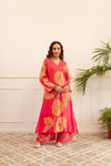Turn heads with this vibrant red German rayon kurta and palazzo set, designed to add charm to your festive and casual wardrobe. Featuring oversized orange floral prints, the kurta comes with a flattering V-neckline highlighted by delicate thread work. The relaxed sleeves and flowy silhouette offer unmatched comfort and elegance. Paired with matching floral-embroidered palazzos, this ensemble is a blend of tradition and modern flair—perfect for a stylish yet comfortable day out.