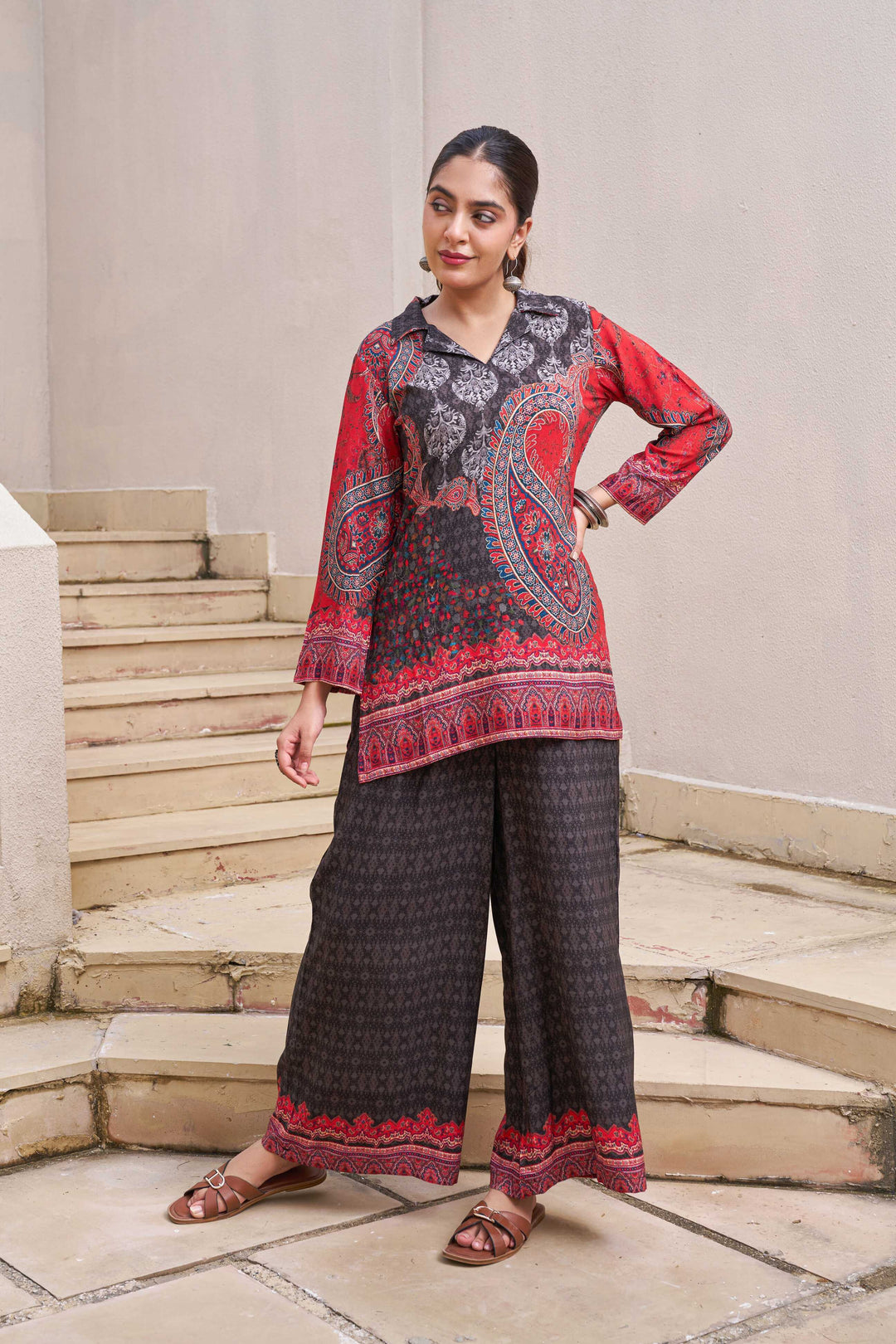 Nehamta Women's Red German Rayon Tunic with Palazzo Co-Ords Set