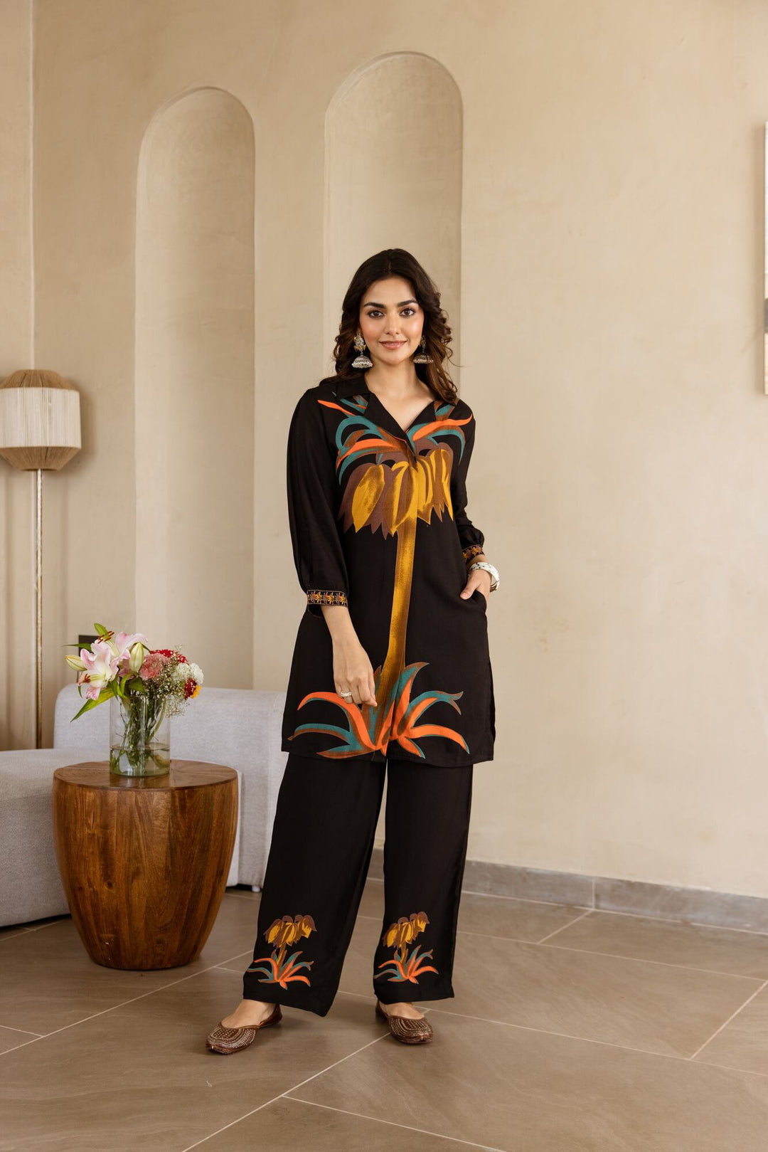 Nehamta Women's Black German Rayon Tunic with Palazzo Co-Ords Set