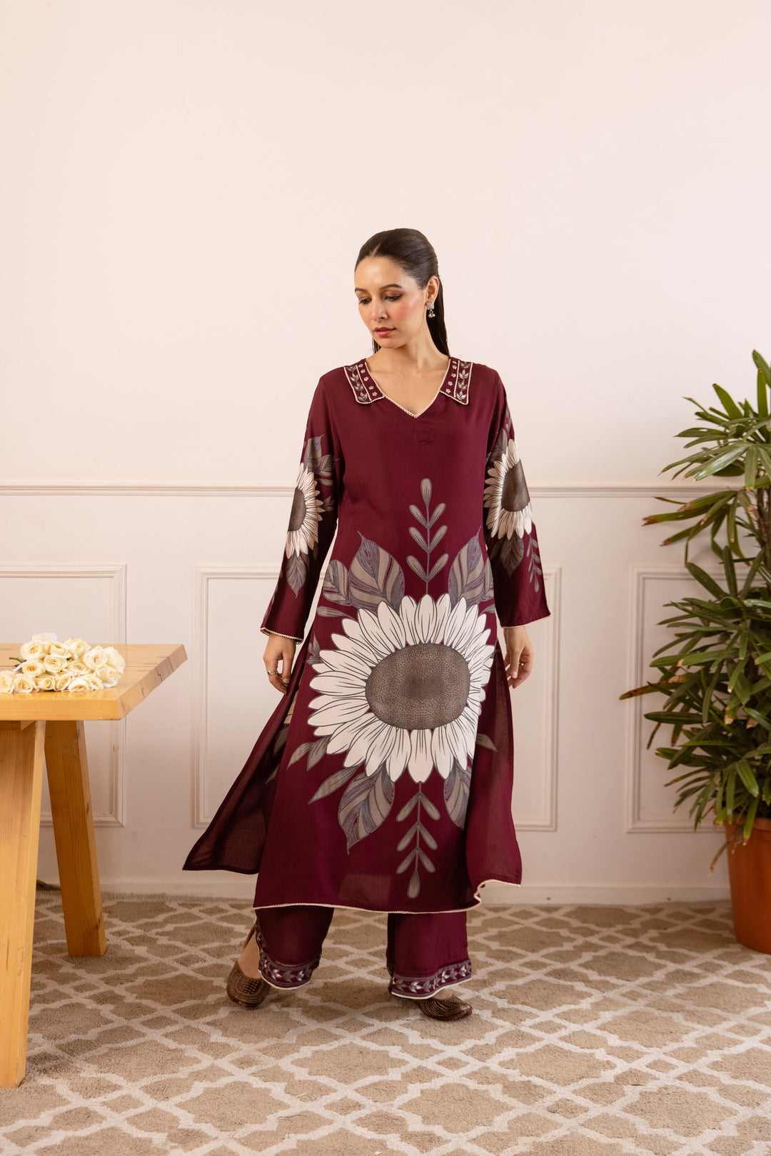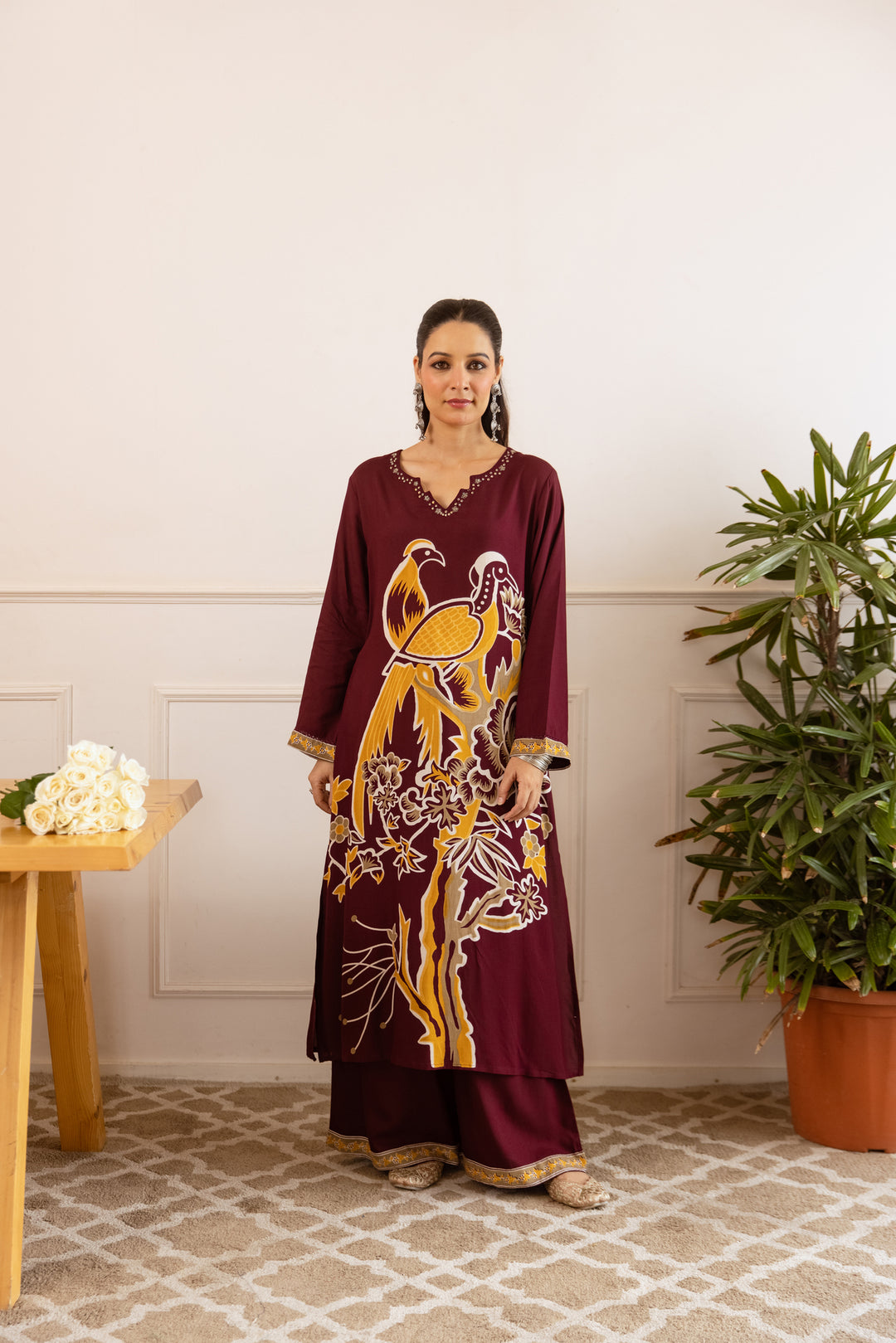 Nehamta Women's Wine German Rayon Kurta & Palazzo Set