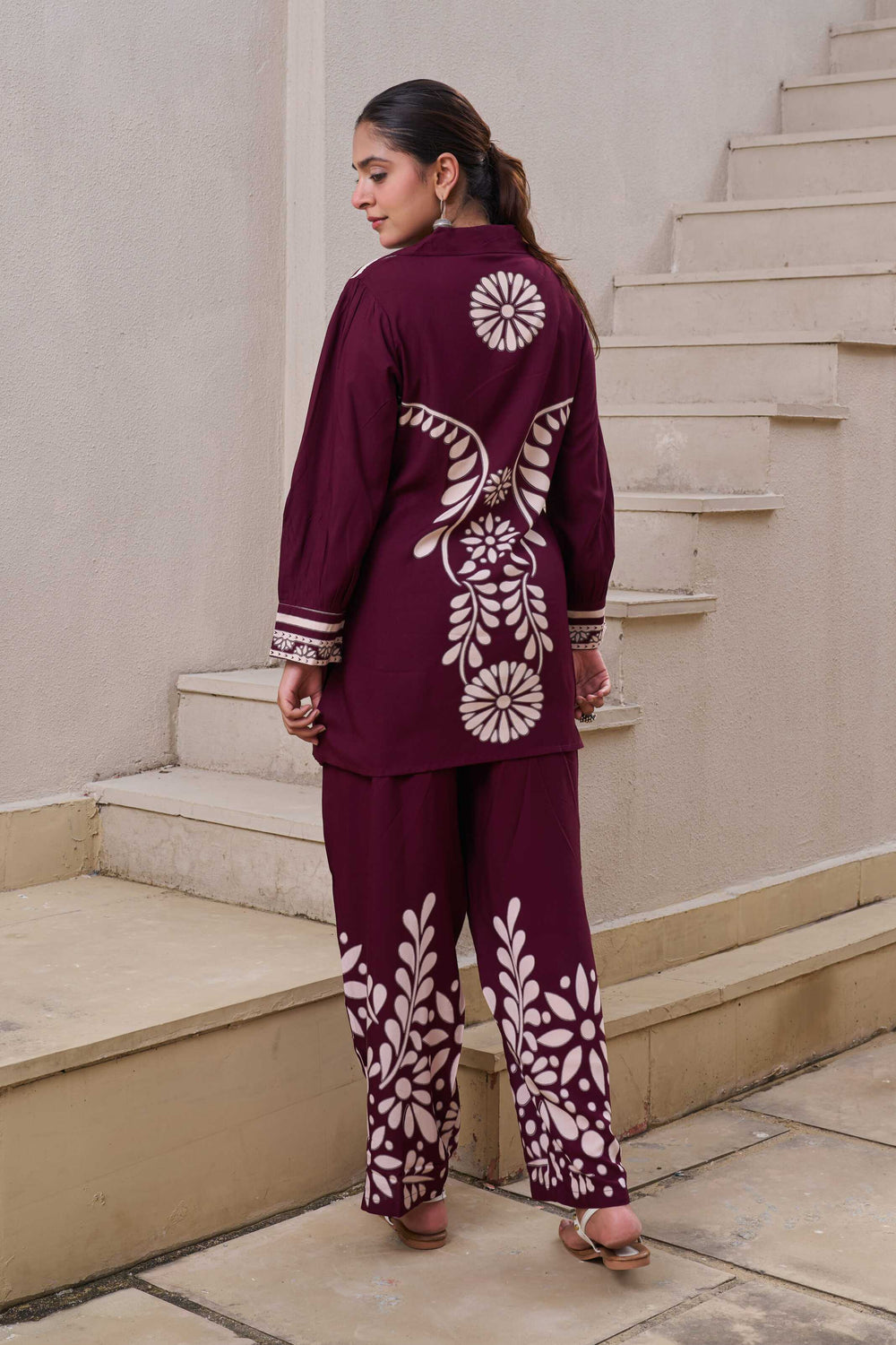 Nehamta Women's Maroon German Rayon Tunic with Palazzo Co-Ords Set