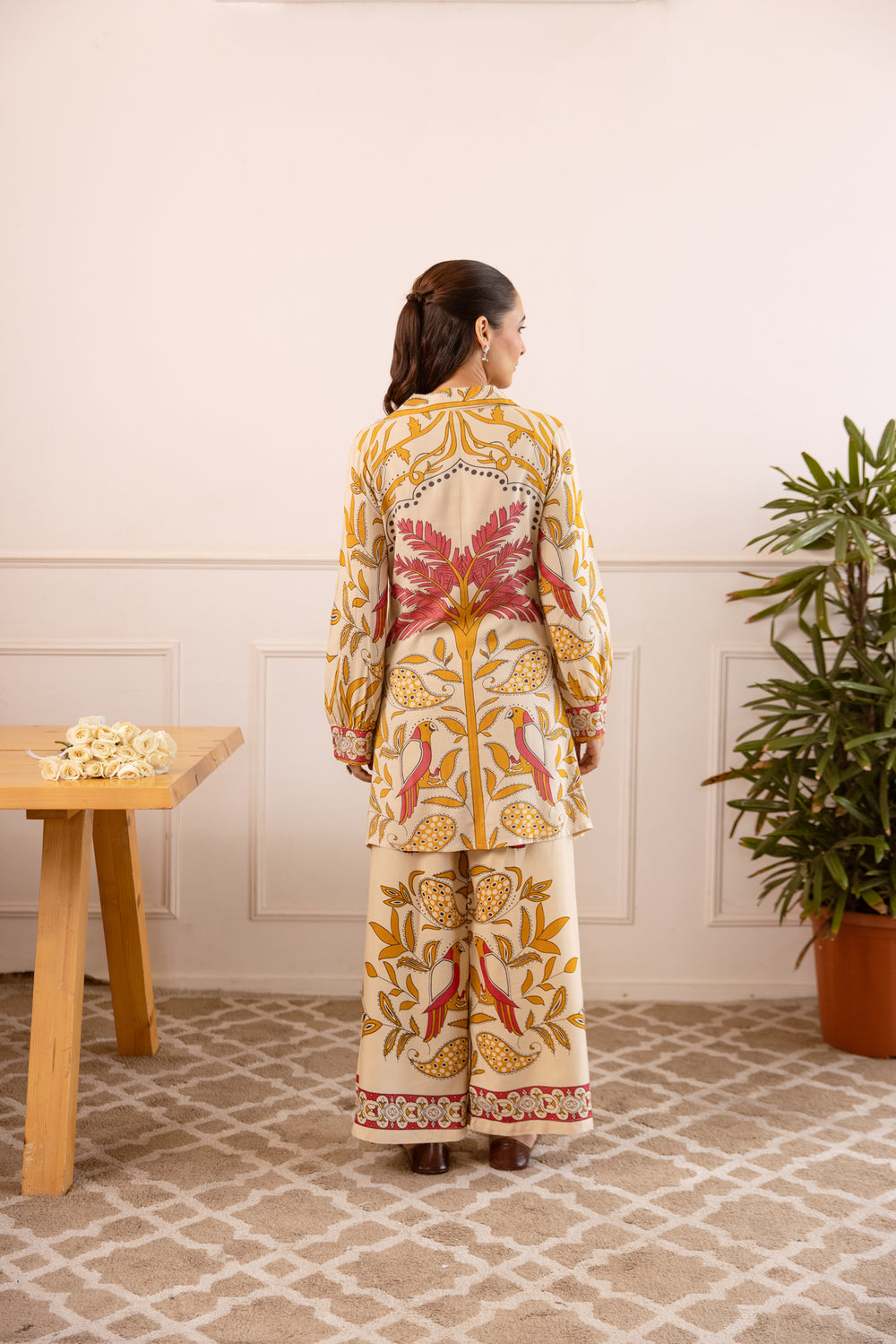 Nehamta Women's Off White Cotton Shirt with Palazzo Co-Ords Set