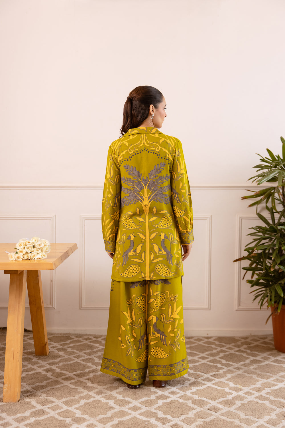 Nehamta Women's Olive German Rayon Shirt with Palazzo Co-Ords Set