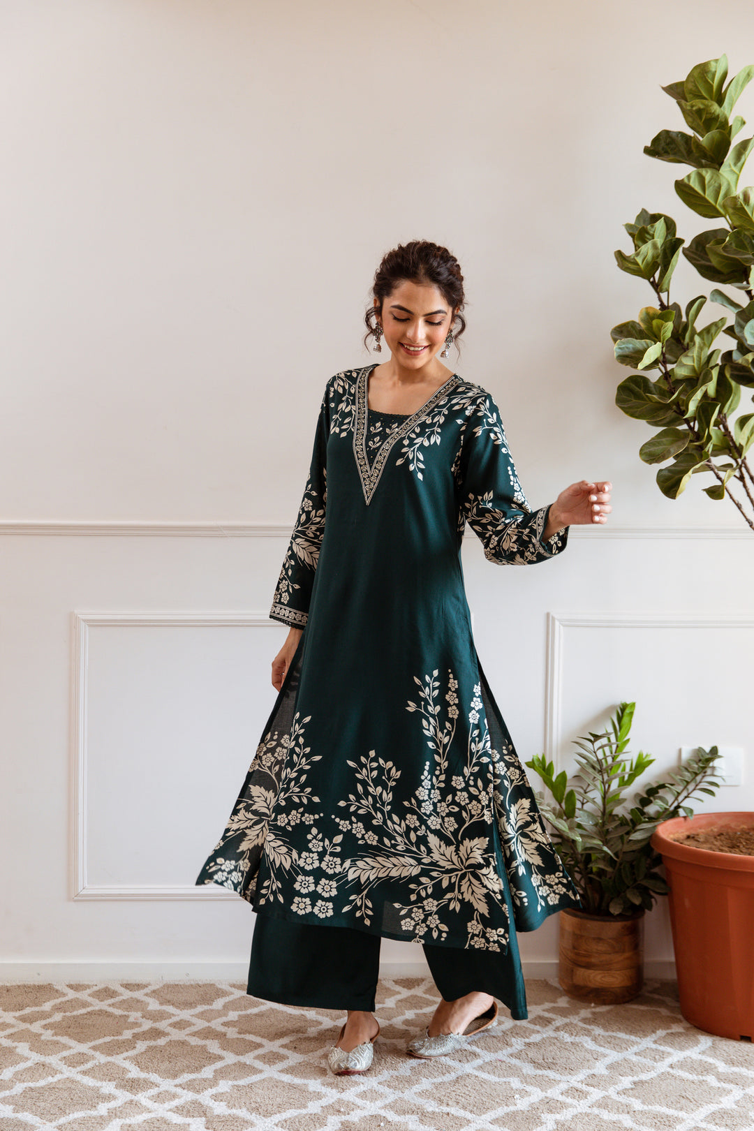 Nehamta Women's Teal German Rayon Kurta & Palazzo Set
