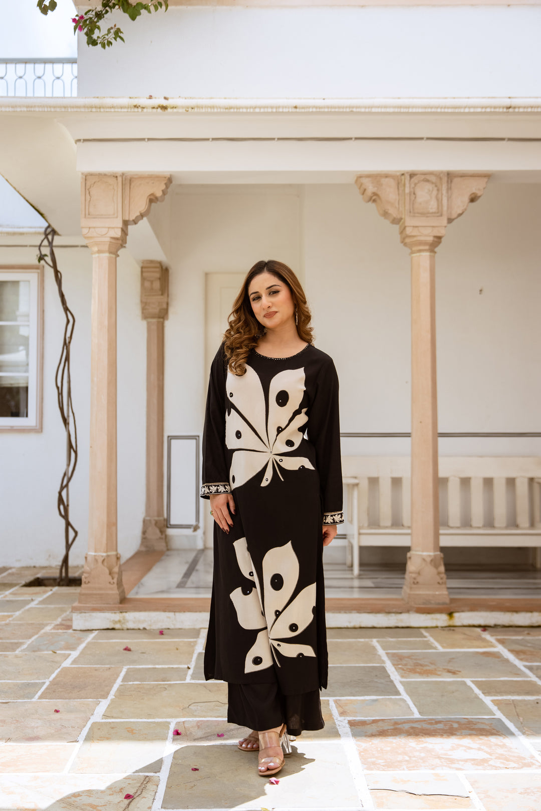 Nehamta Women's Black German Rayon Kurta & Palazzo Set