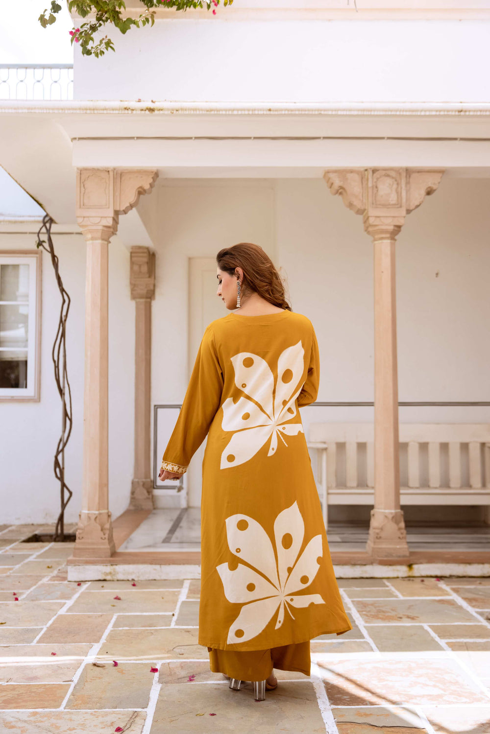 Nehamta Women's Mustard German Rayon Kurta & Palazzo Set