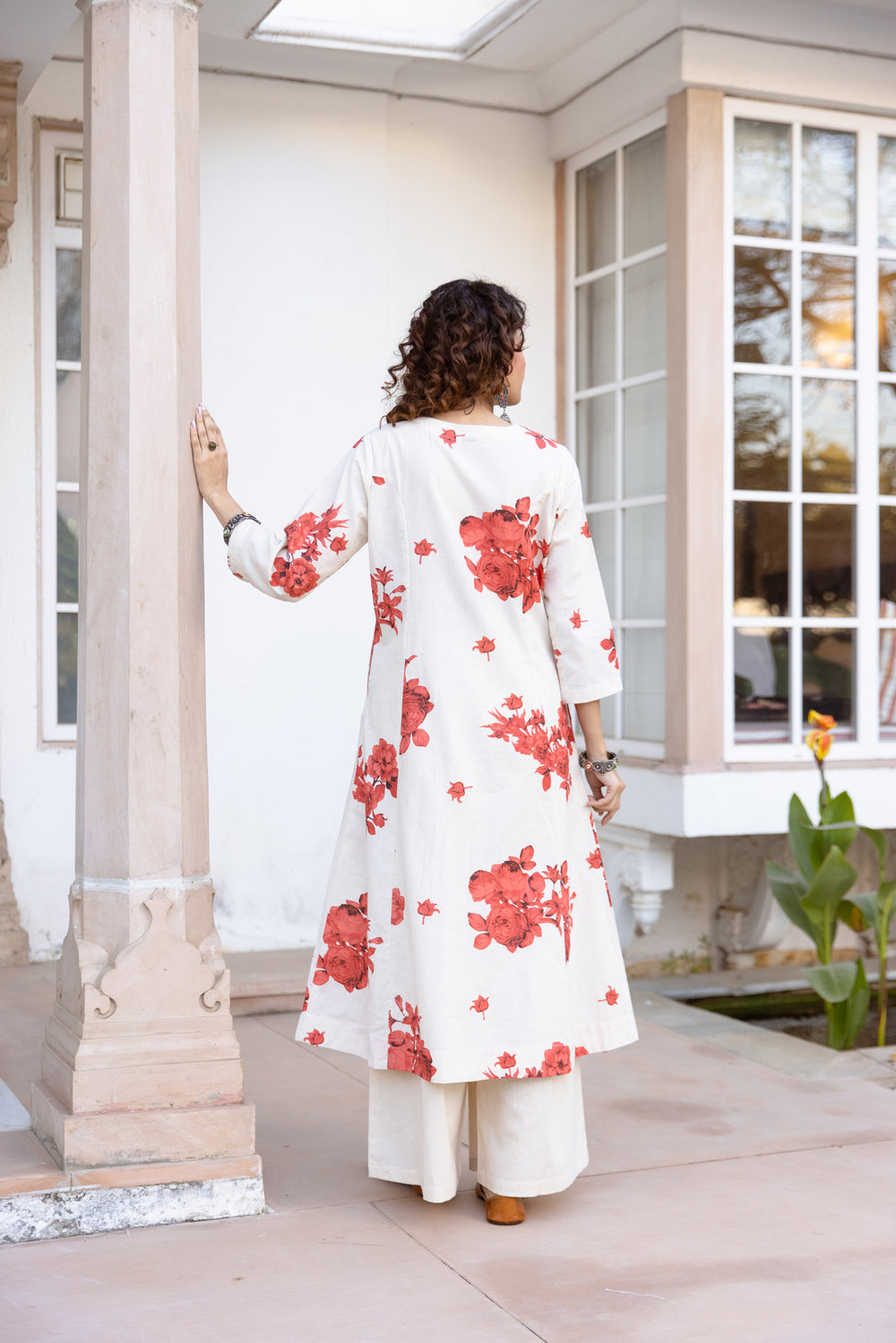 Nehamta Women's White Cotton Blend Kurta & Palazzo Set