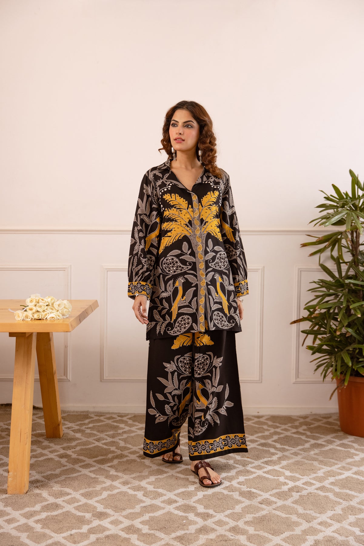 Nehamta Women's Black German Rayon Tunic with Palazzo Co-Ords Set