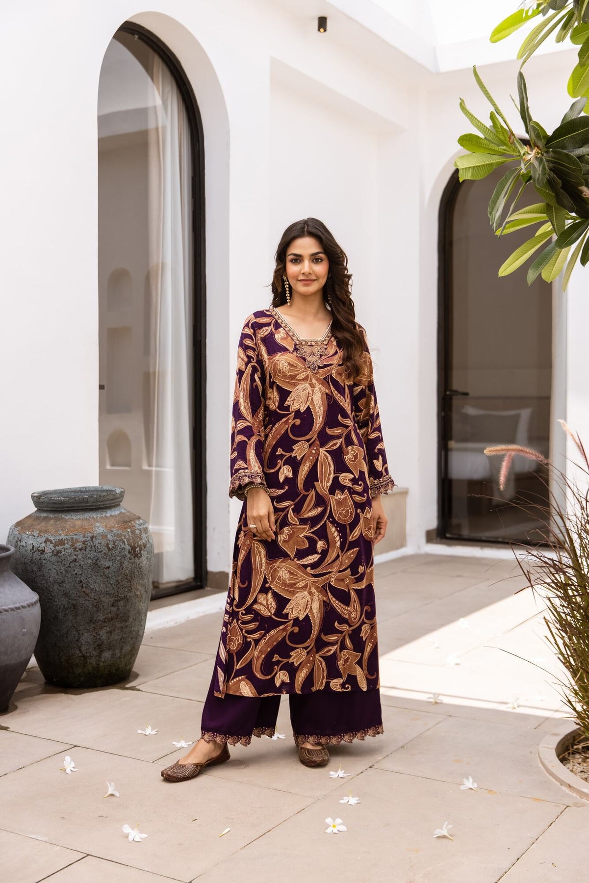 Nehamta Women's Purple German Rayon Kurta & Palazzo Set