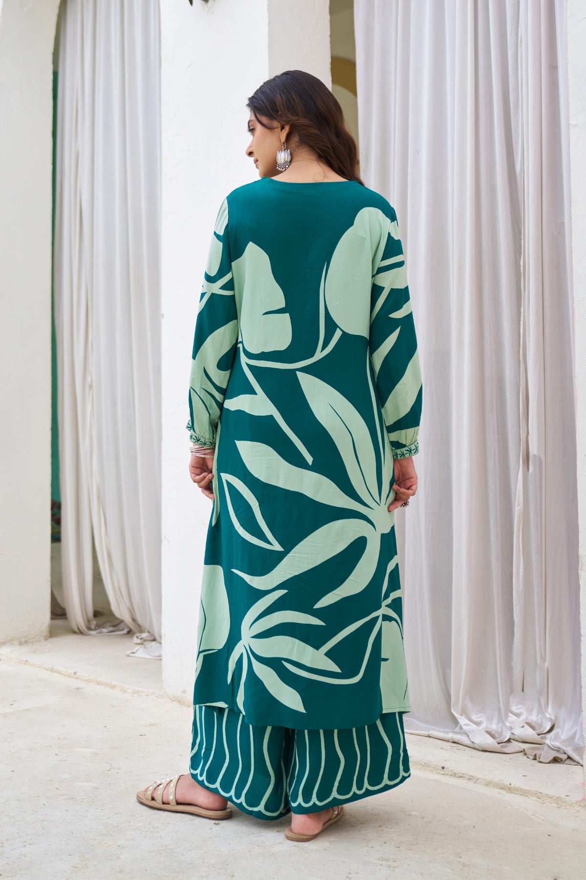 Nehamta Women’s Teal Blue Kurta & Palazzo Set. Crafted from soft and comfortable German rayon fabric, this stylish set features a straight-cut kurta paired with a matching palazzo, offering a balanced blend of comfort and contemporary appeal.The rich teal blue colour enhances its graceful look, making it suitable for everyday wear as well as casual outings. Designed to provide ease of movement and a flattering fit, this kurta set is a versatile choice for women who prefer simple yet elegant ethnic fashion.