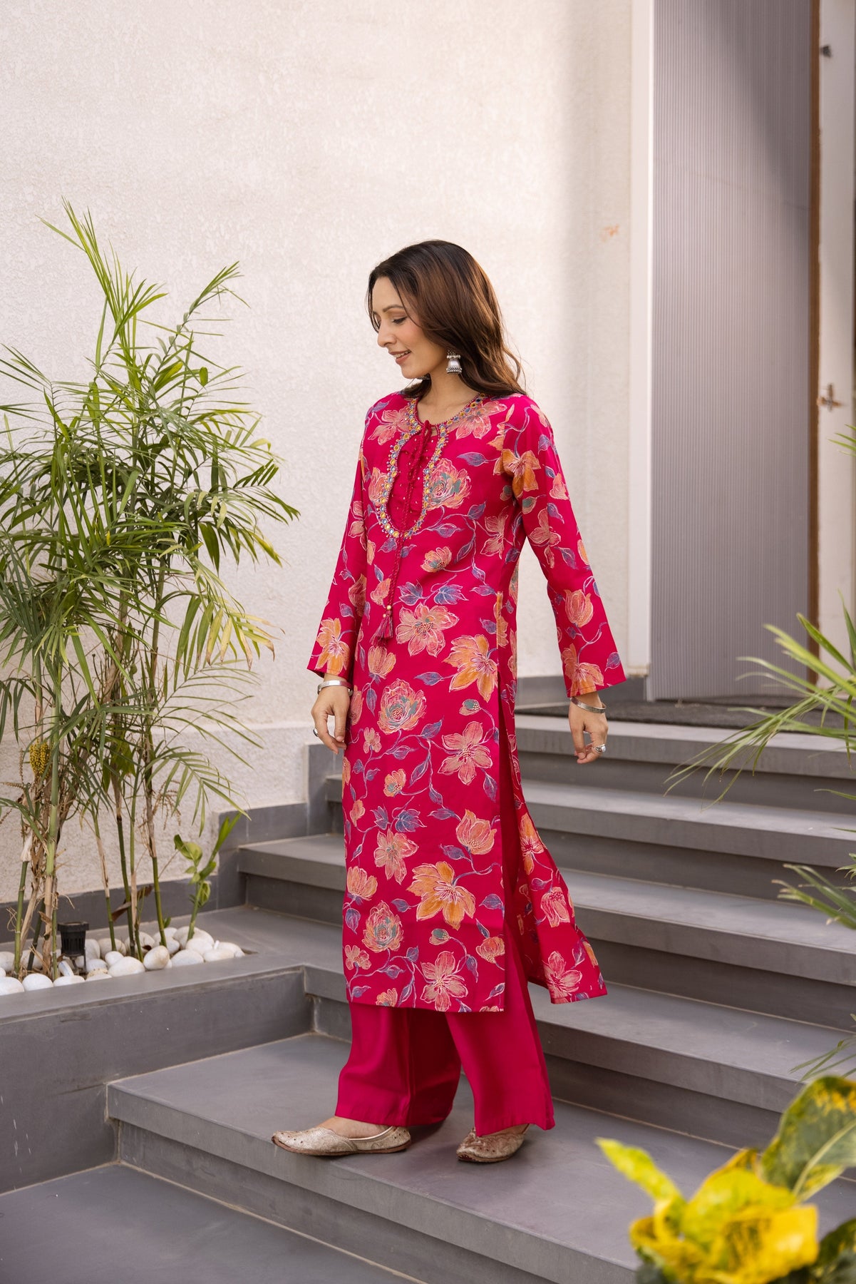 Nehamta Women's Rani Modal Muslin Kurta & Palazzo Set