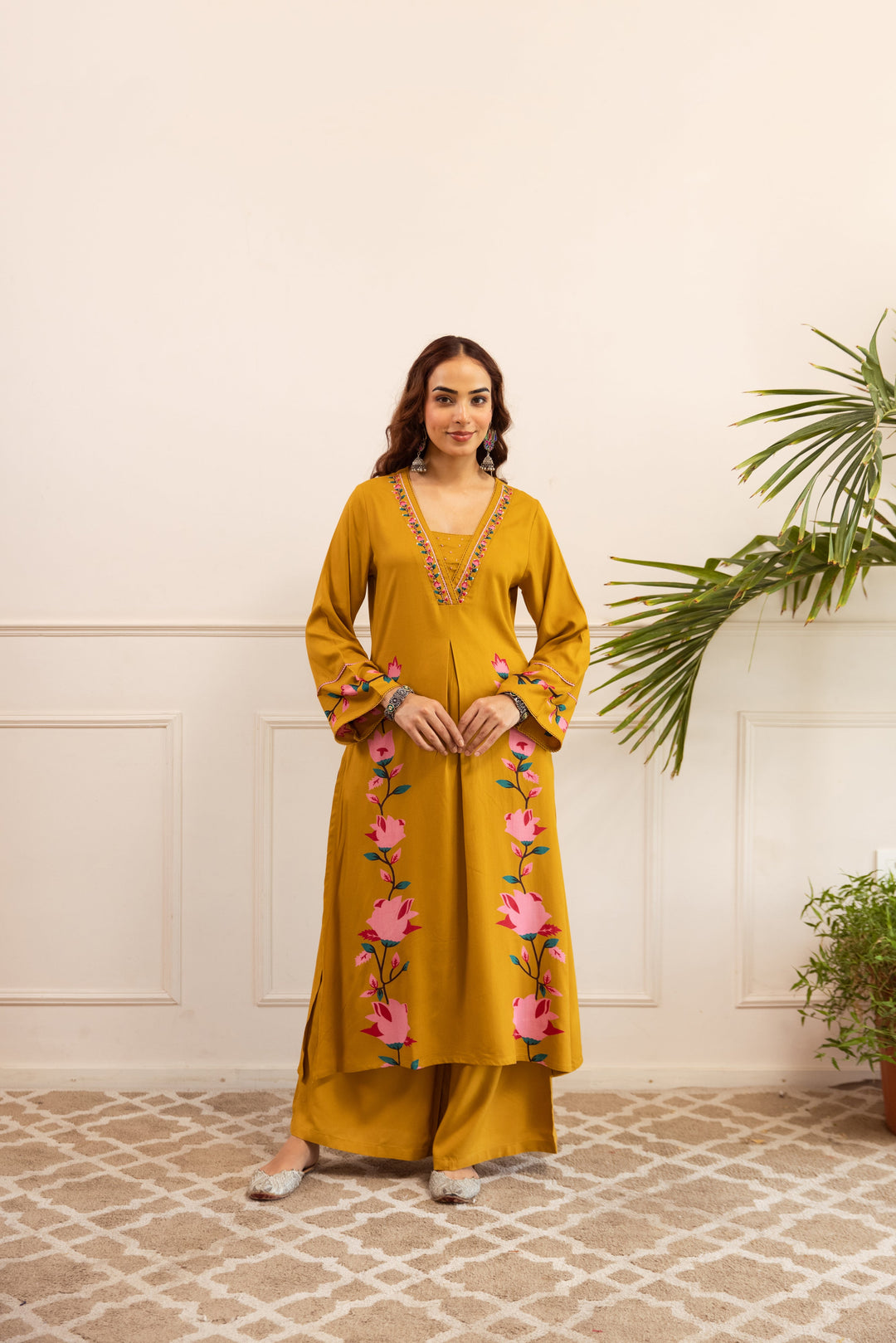 Nehamta Women's Mustard German Rayon Kurta & Palazzo Set