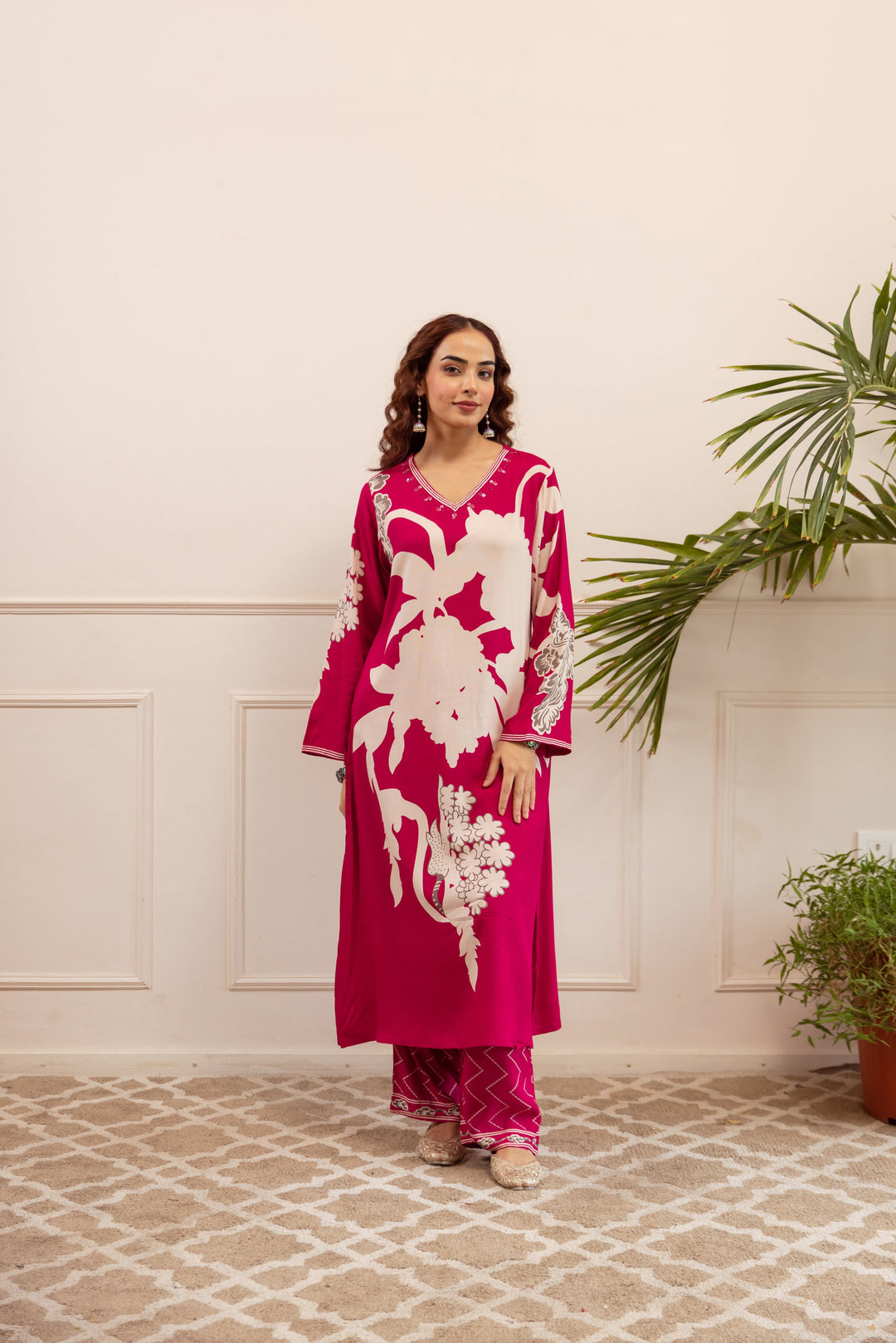 Nehamta Women's Rani Pink German Rayon Kurta & Palazzo Set