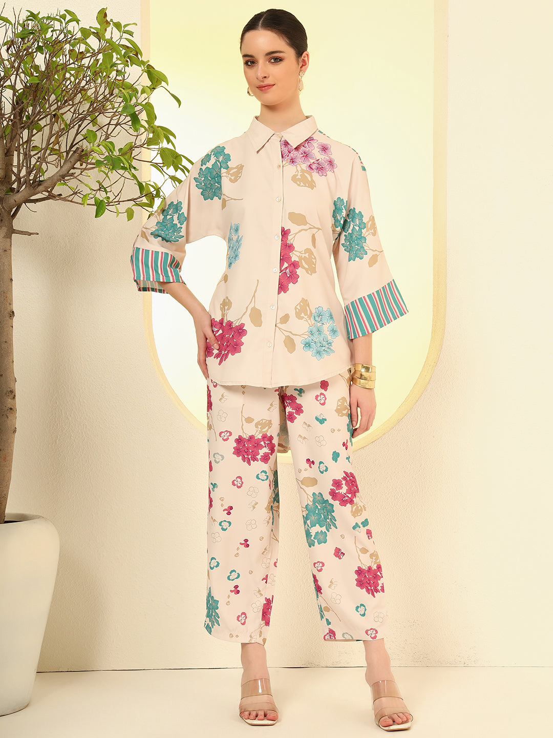 Nehamta Women's Cream Polyester Co-Ord Set