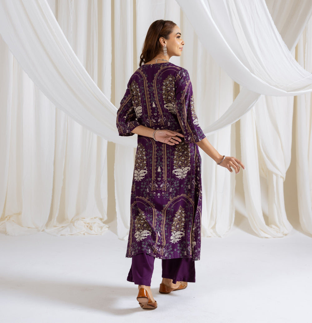 Nehamta Women's Purple German Rayon Kurta & Palazzo Set