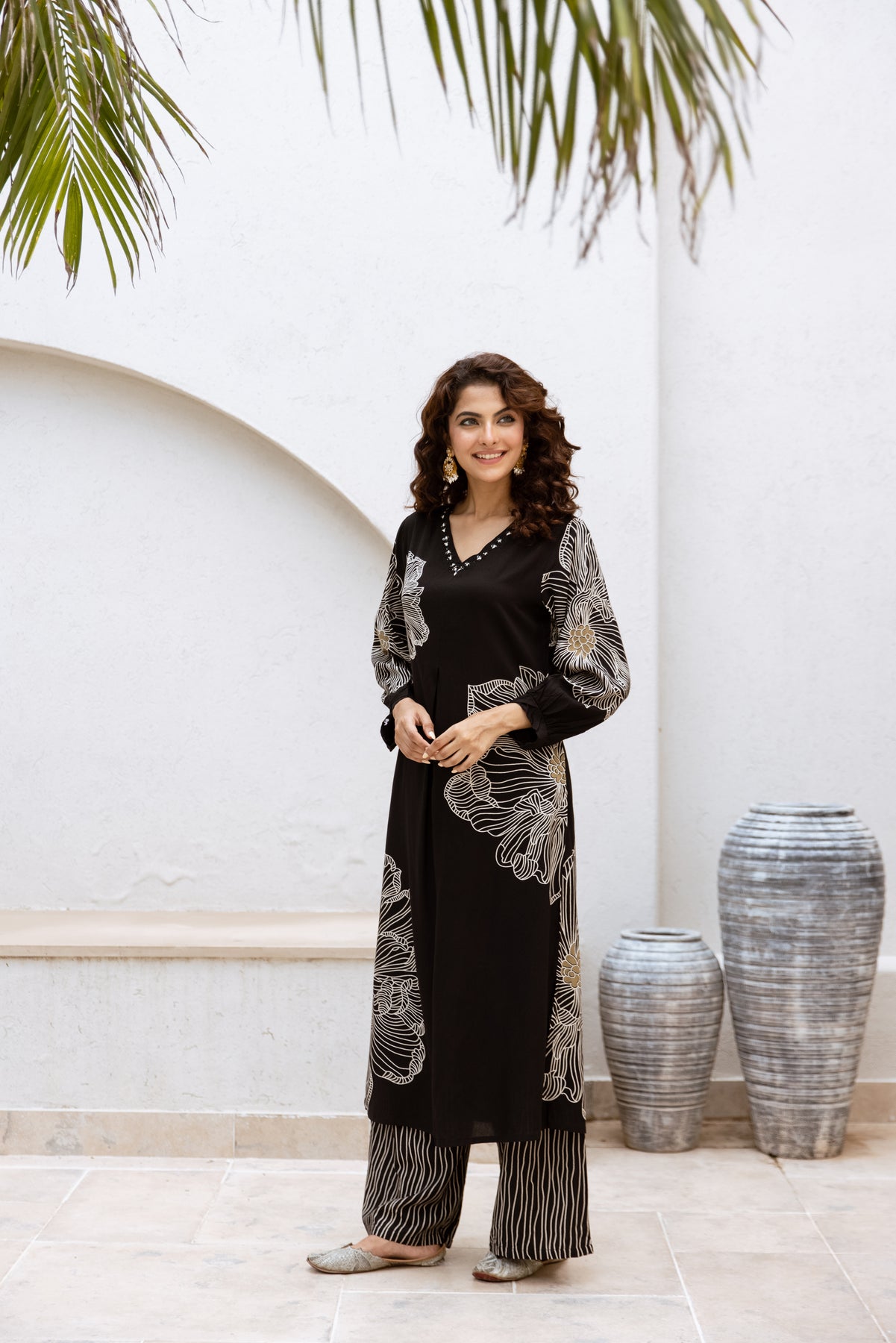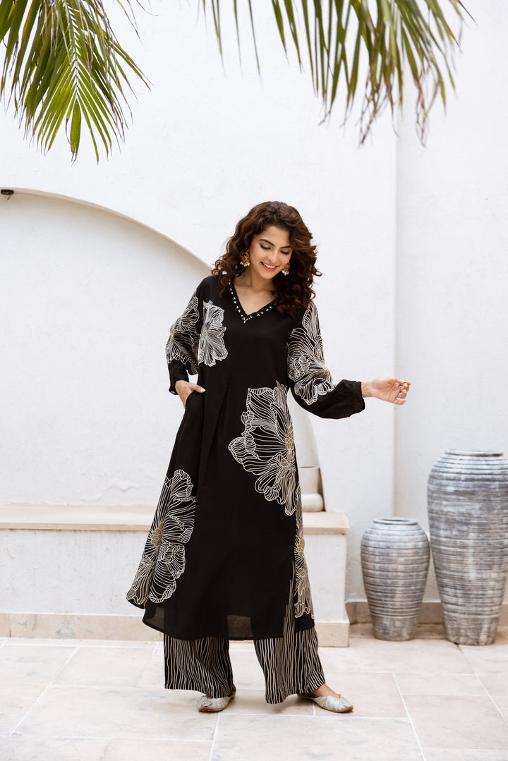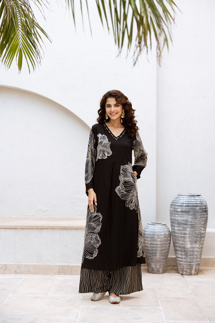 Nehamta Women's Black German Rayon Kurta & Palazzo Set
