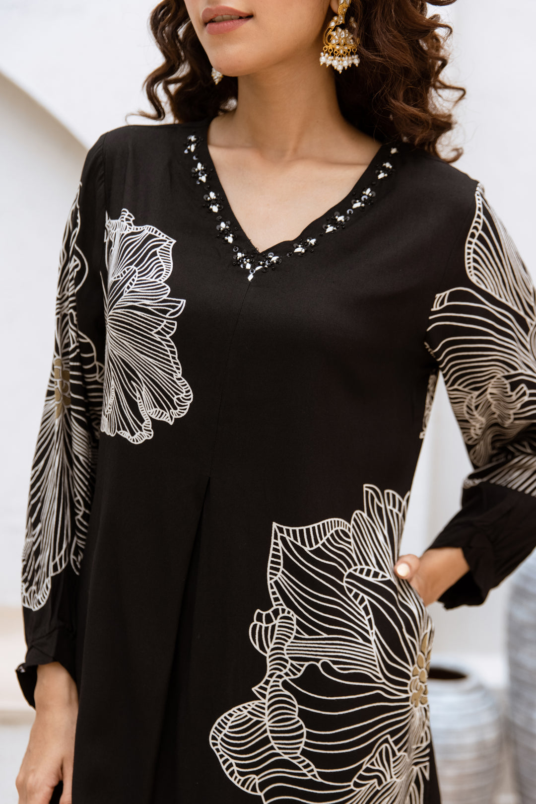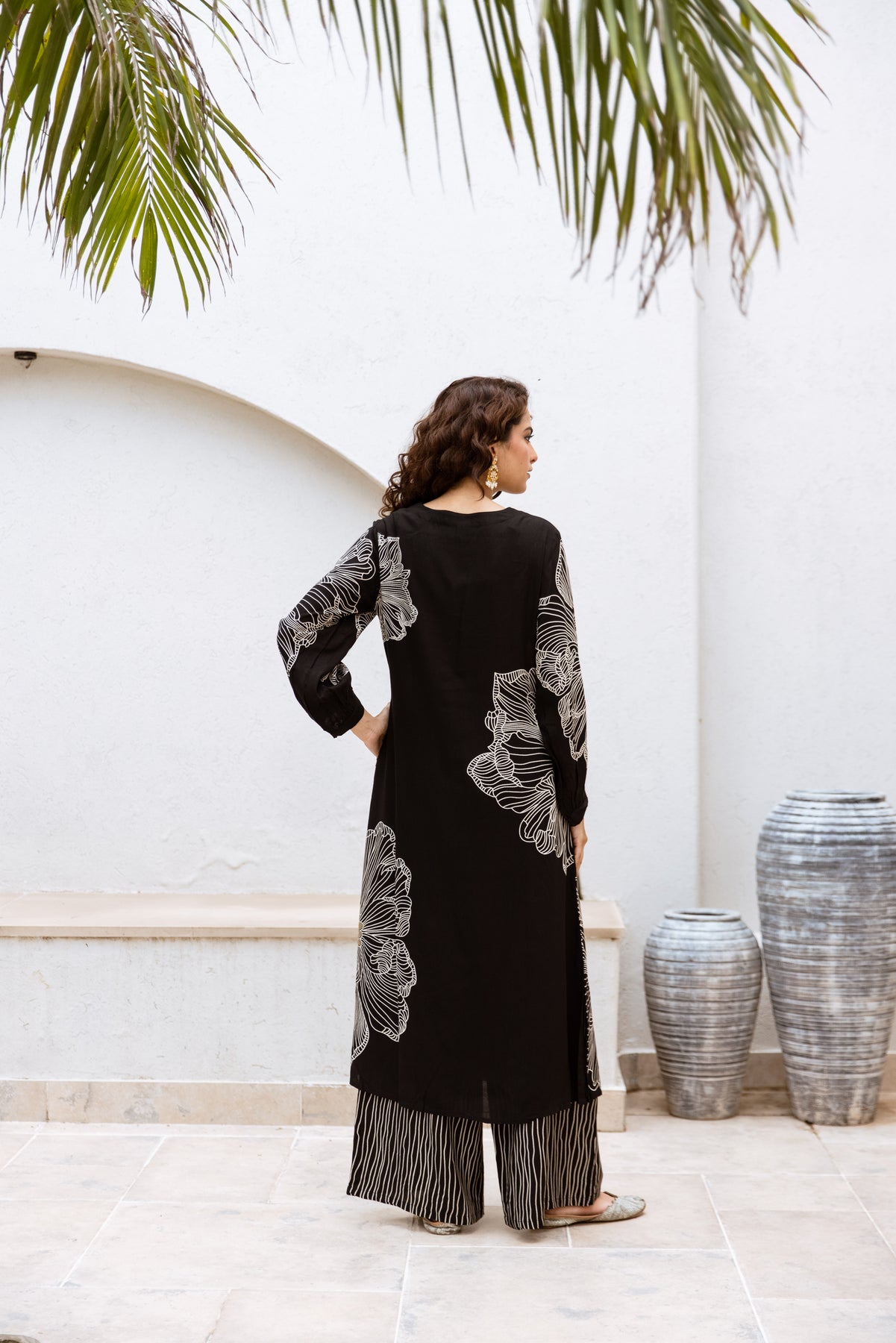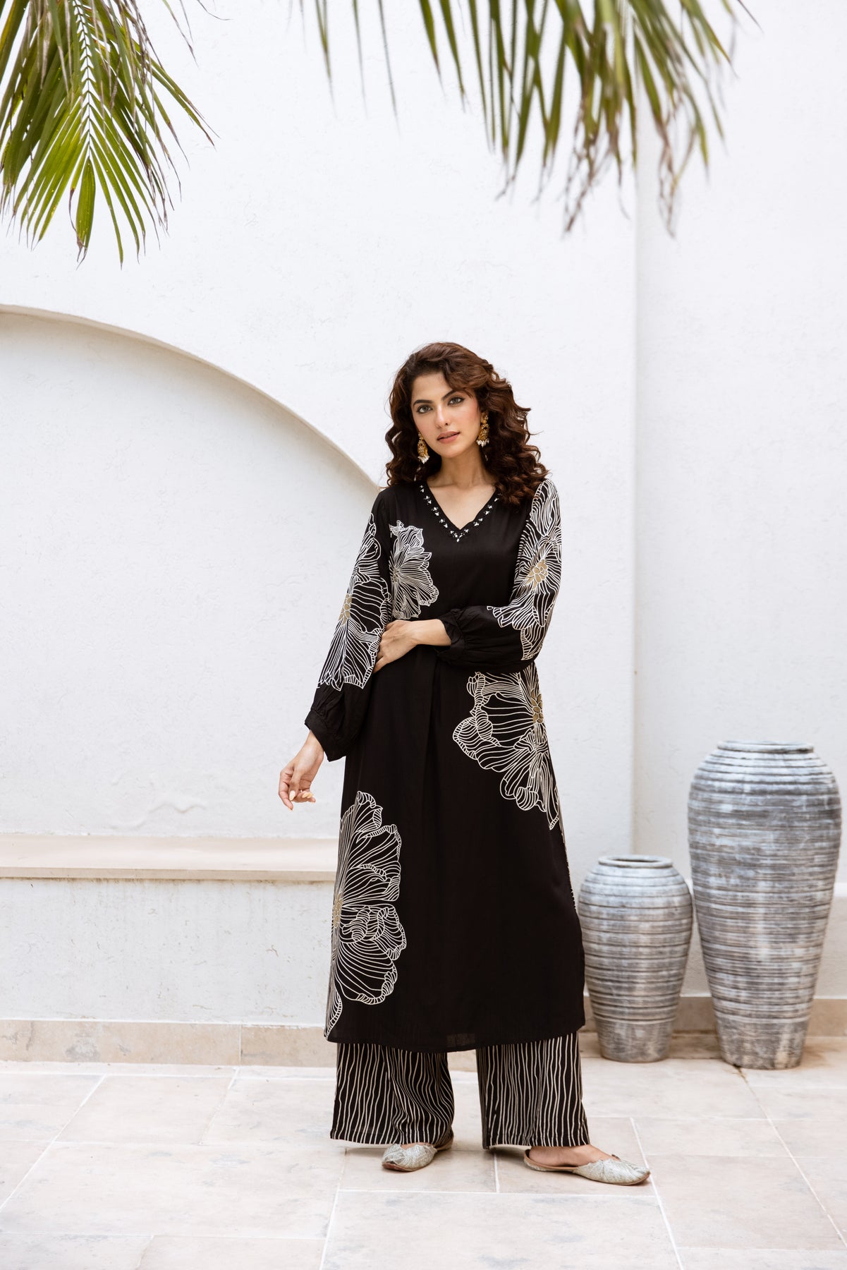 Nehamta Women's Black German Rayon Kurta & Palazzo Set