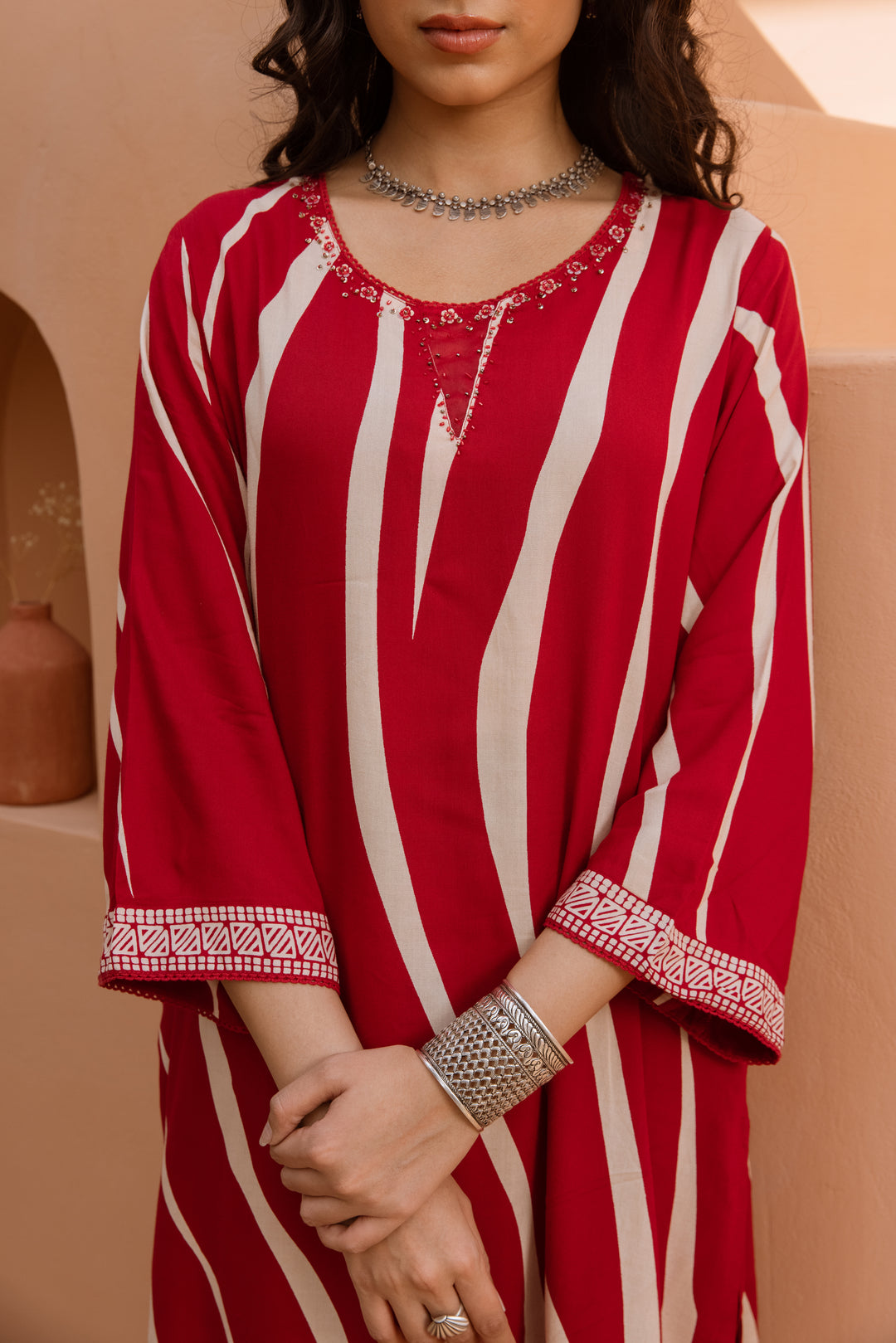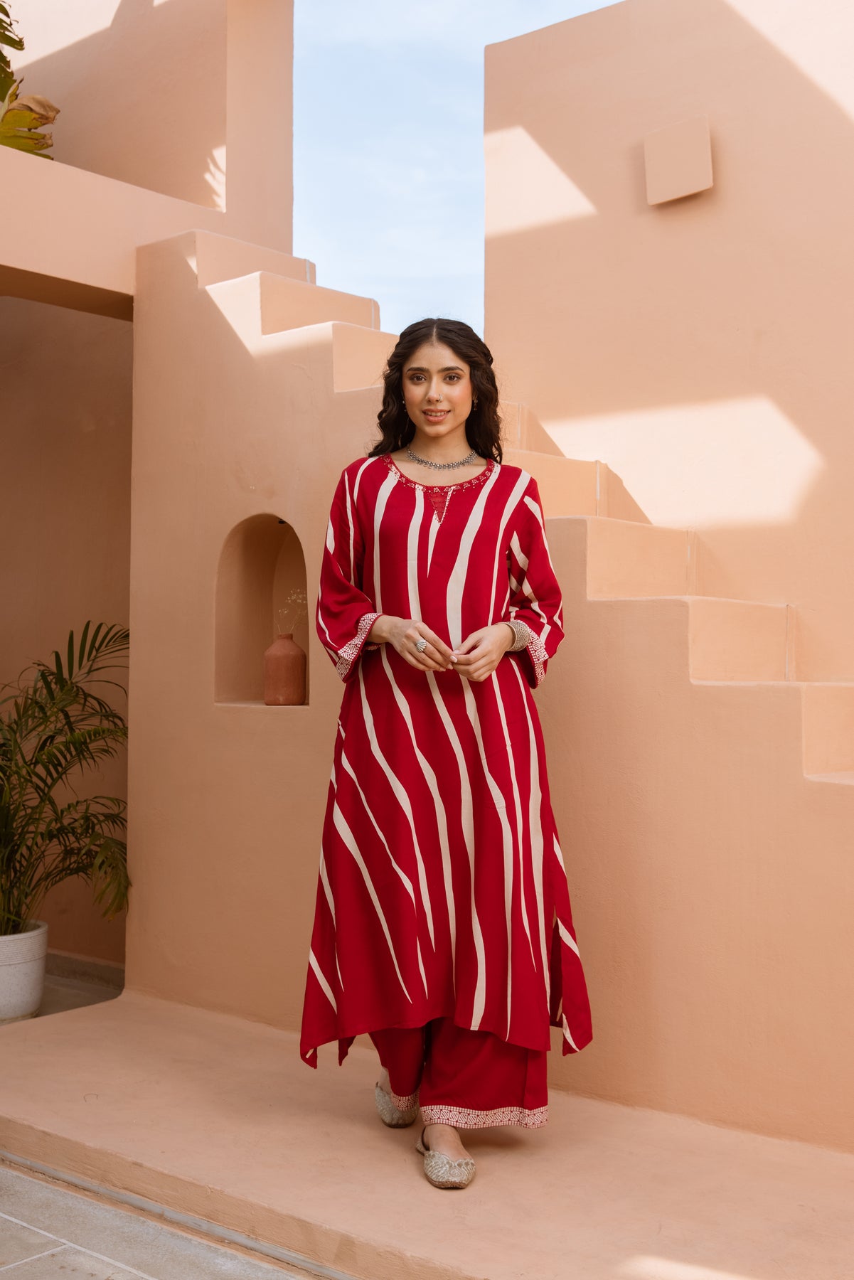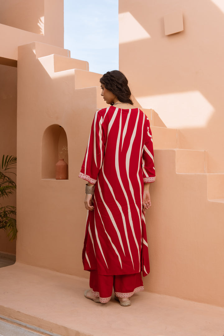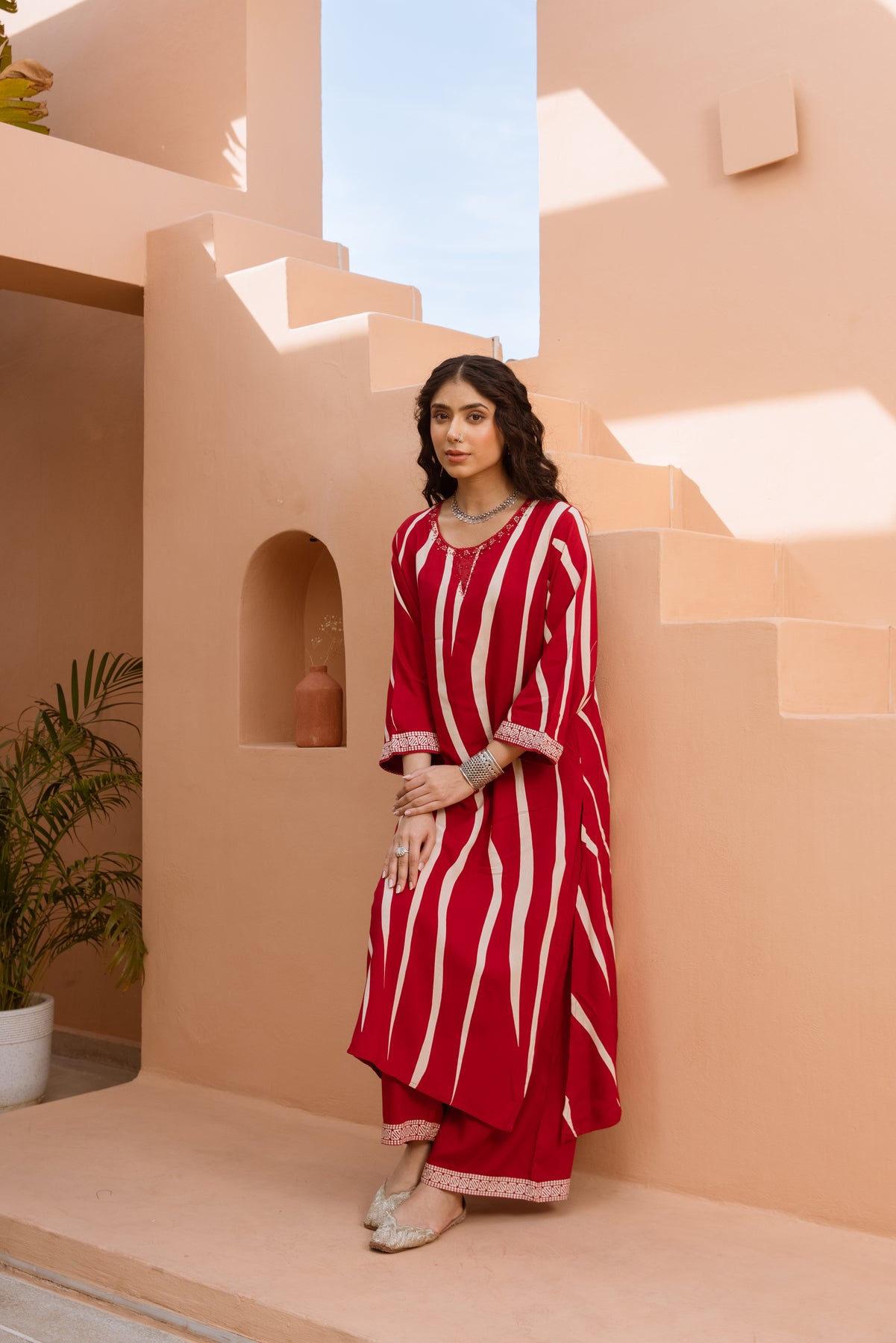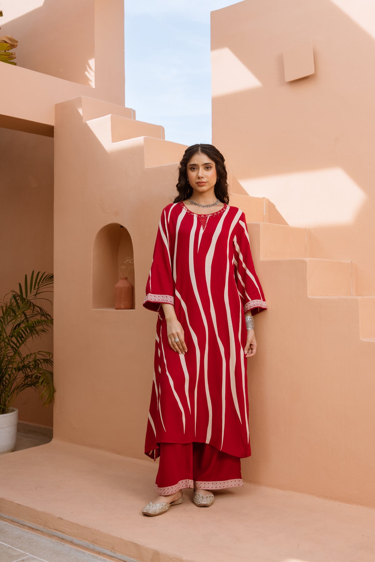 Nehamta Women's Red German Rayon Kurta & Palazzo Set