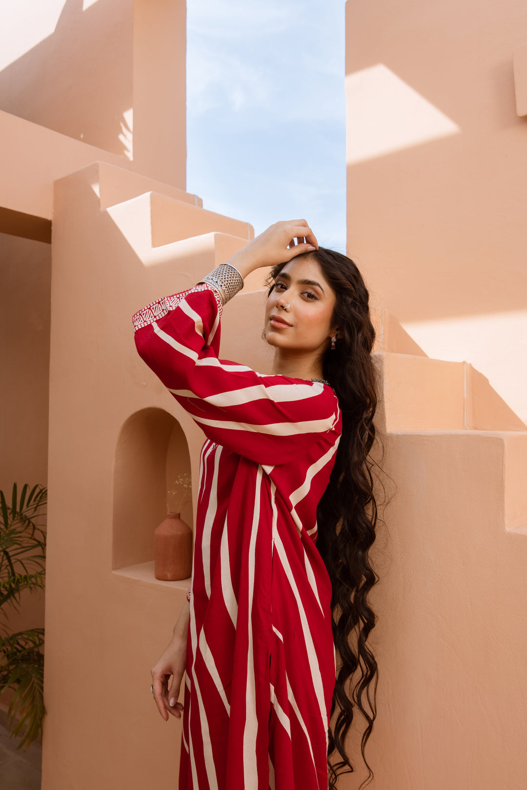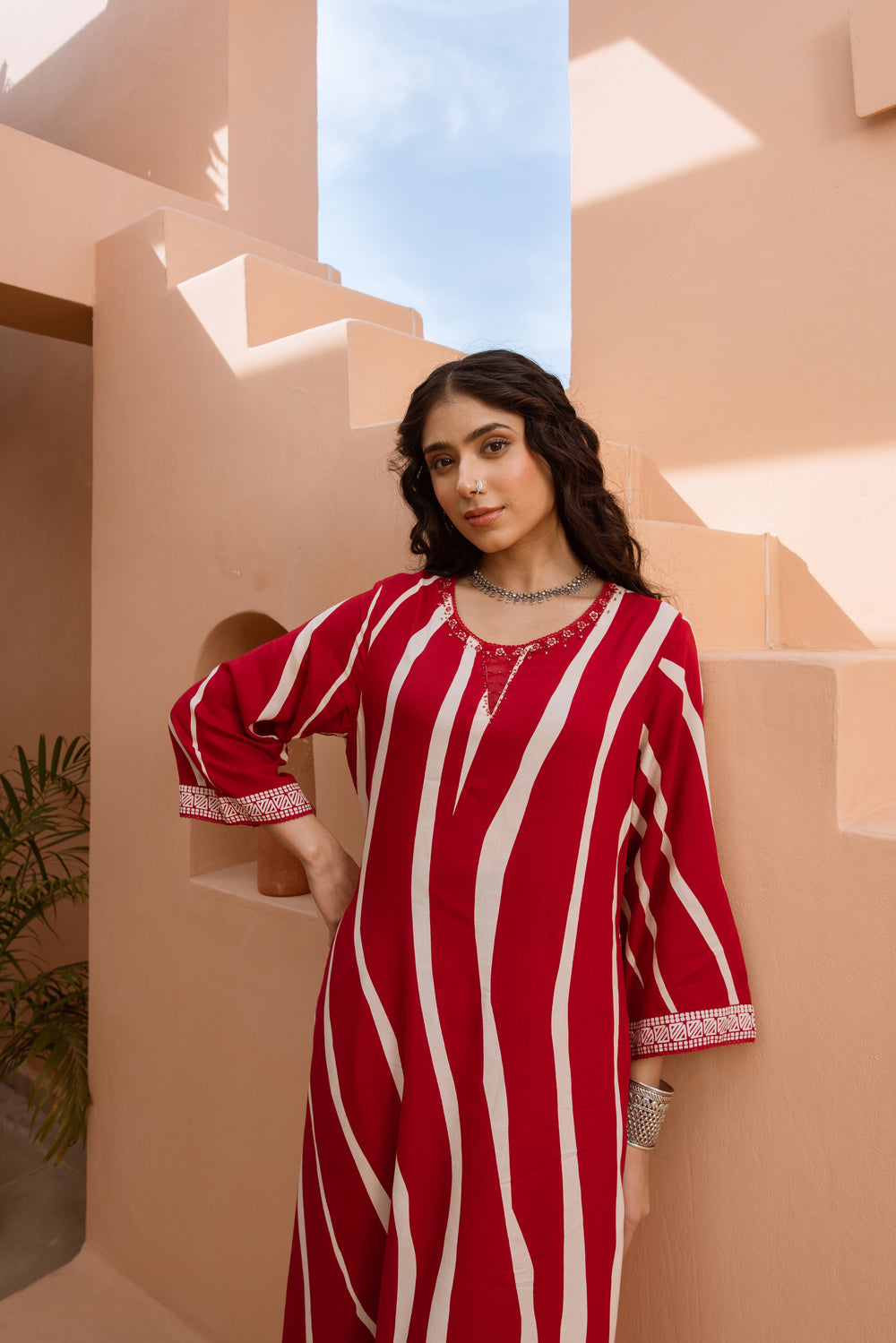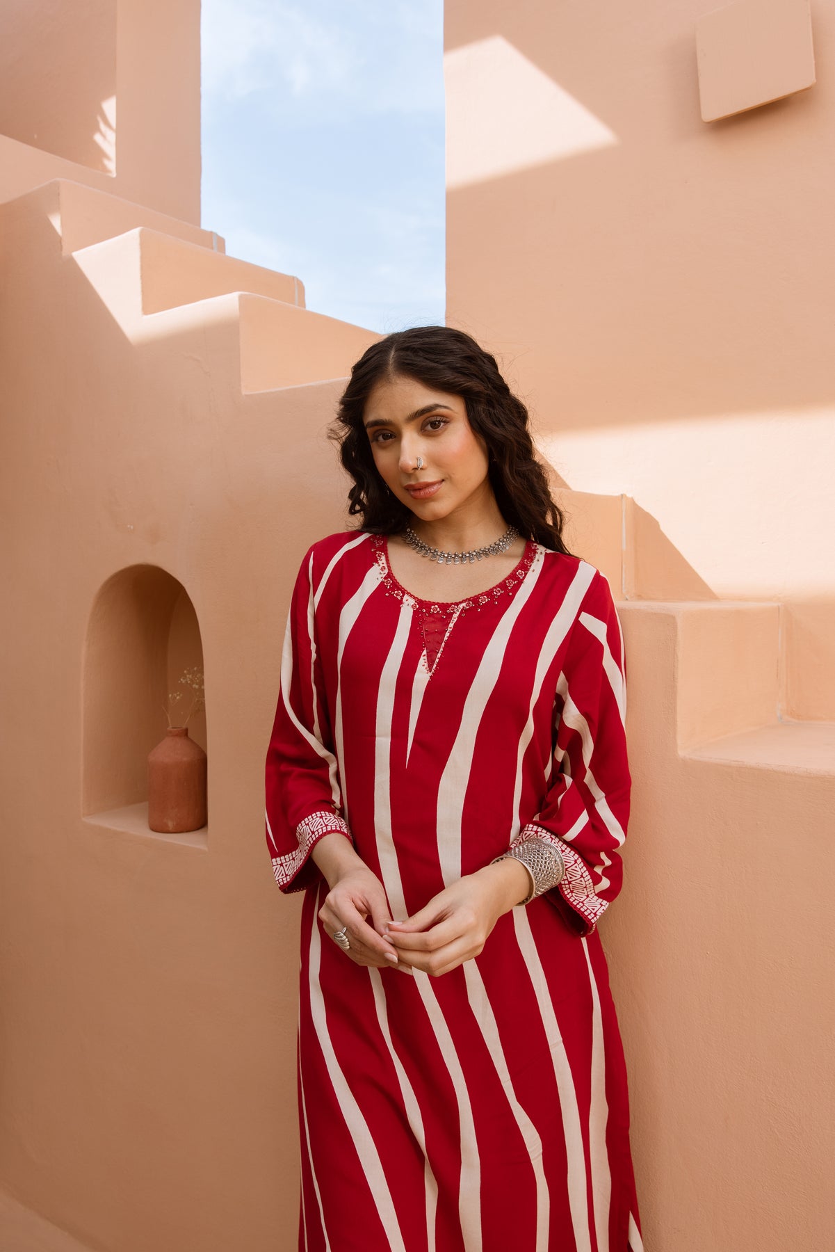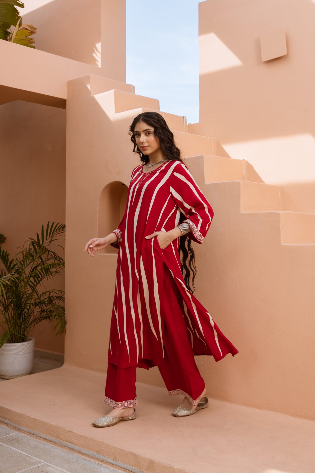 Nehamta Women's Red German Rayon Kurta & Palazzo Set